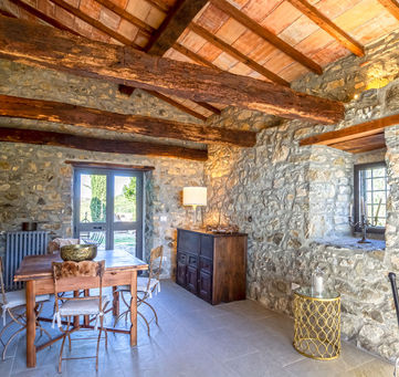 Deze boerderij met een spectaculair panoramisch zicht staat op de glooiende heuvels rond Scansano op korte afstand van beroemde wijnhuizen en landgoederen zoals Roccapesta, gekend van de Morelline di Scansano-wijn. De woning werd volledig gerenoveerd met respect voor de Toscaanse traditie waarbij de balken en bakstenen gewelven zichtbaar zijn gebleven. De tuin, met moestuin sluit aan op een kleine olijfboomgaard met 80 bomen.
