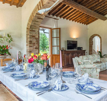 Boerderij in de betoverende heuvels rond Asciano met 11 ha grond, waarvan 4 ha omheind met twee stallen verdeeld in 14 boxen. Op de benedenverdieping bevind zich een afzonderlijke guest house. In deze woning met een prachtige tuin kan u in alle rust genieten van de natuur. De locatie biedt een geweldig uitzicht op de omliggende heuvels.